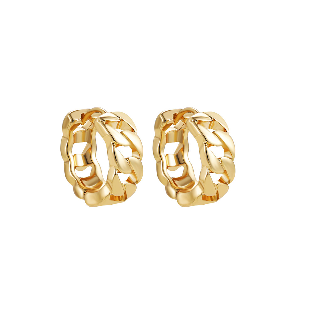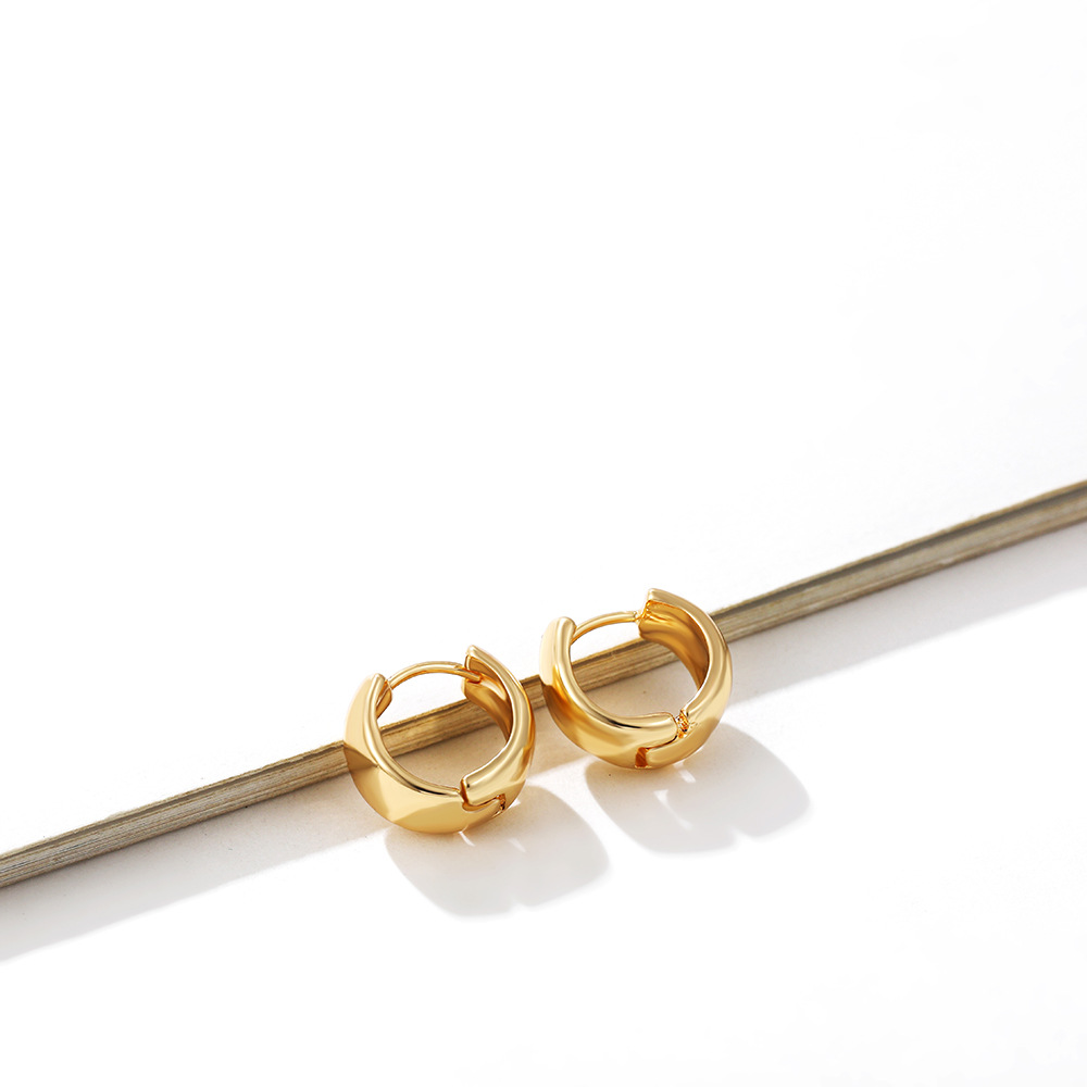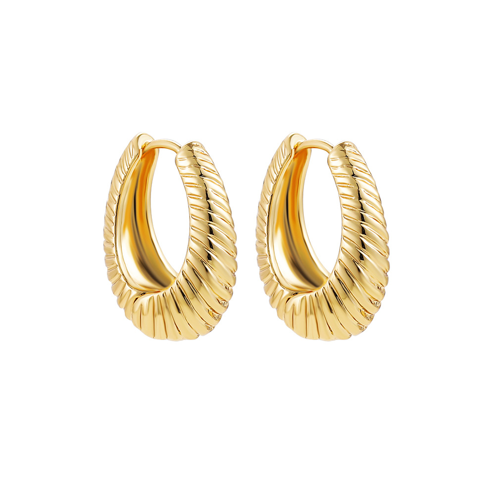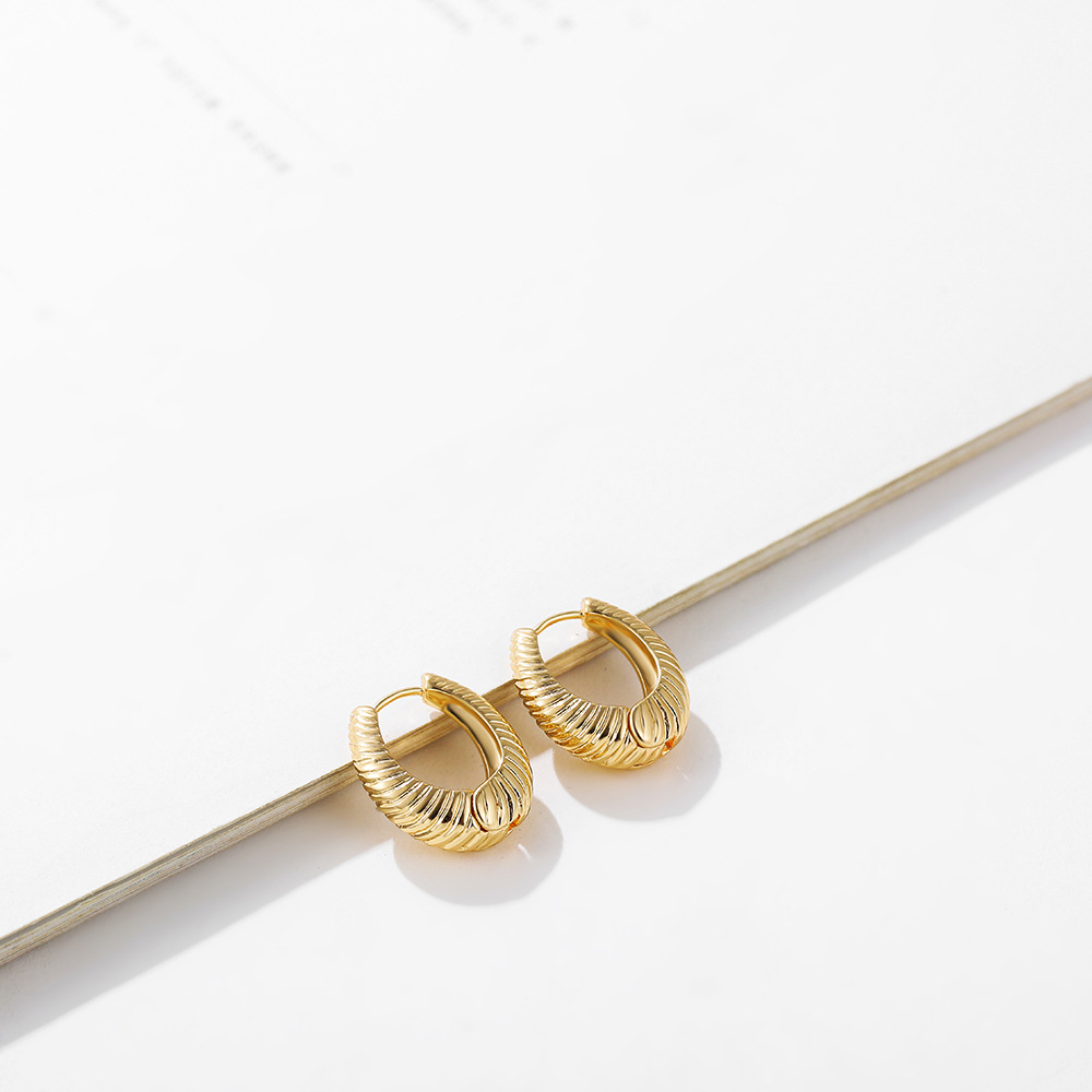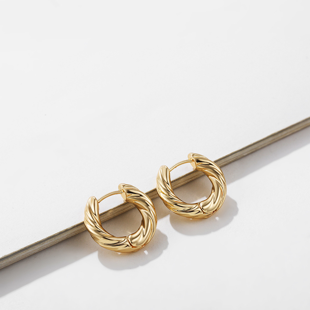18K Gold Retro Minimalist Earrings Geometric Twist Circle Layered Light-Luxury Hoops