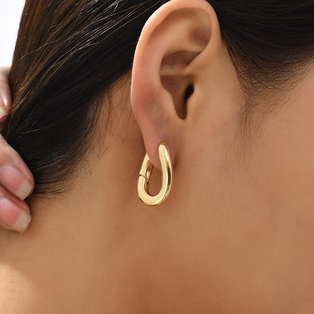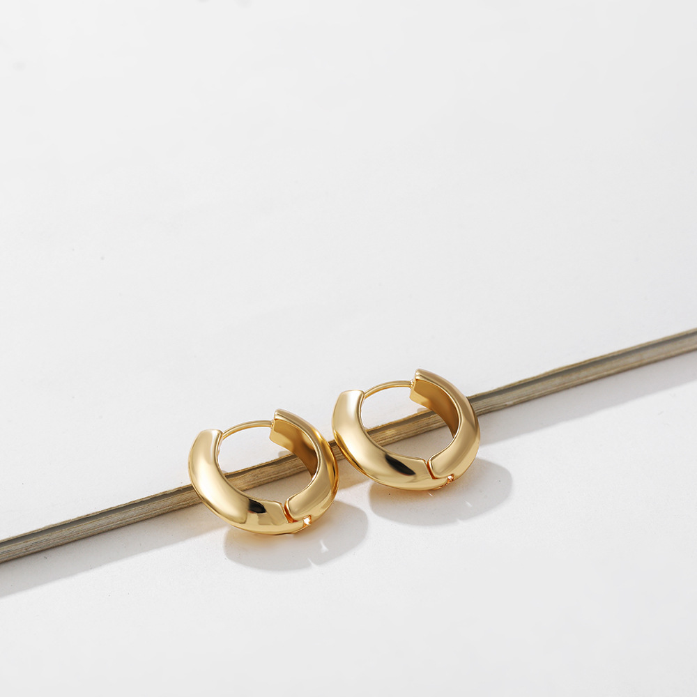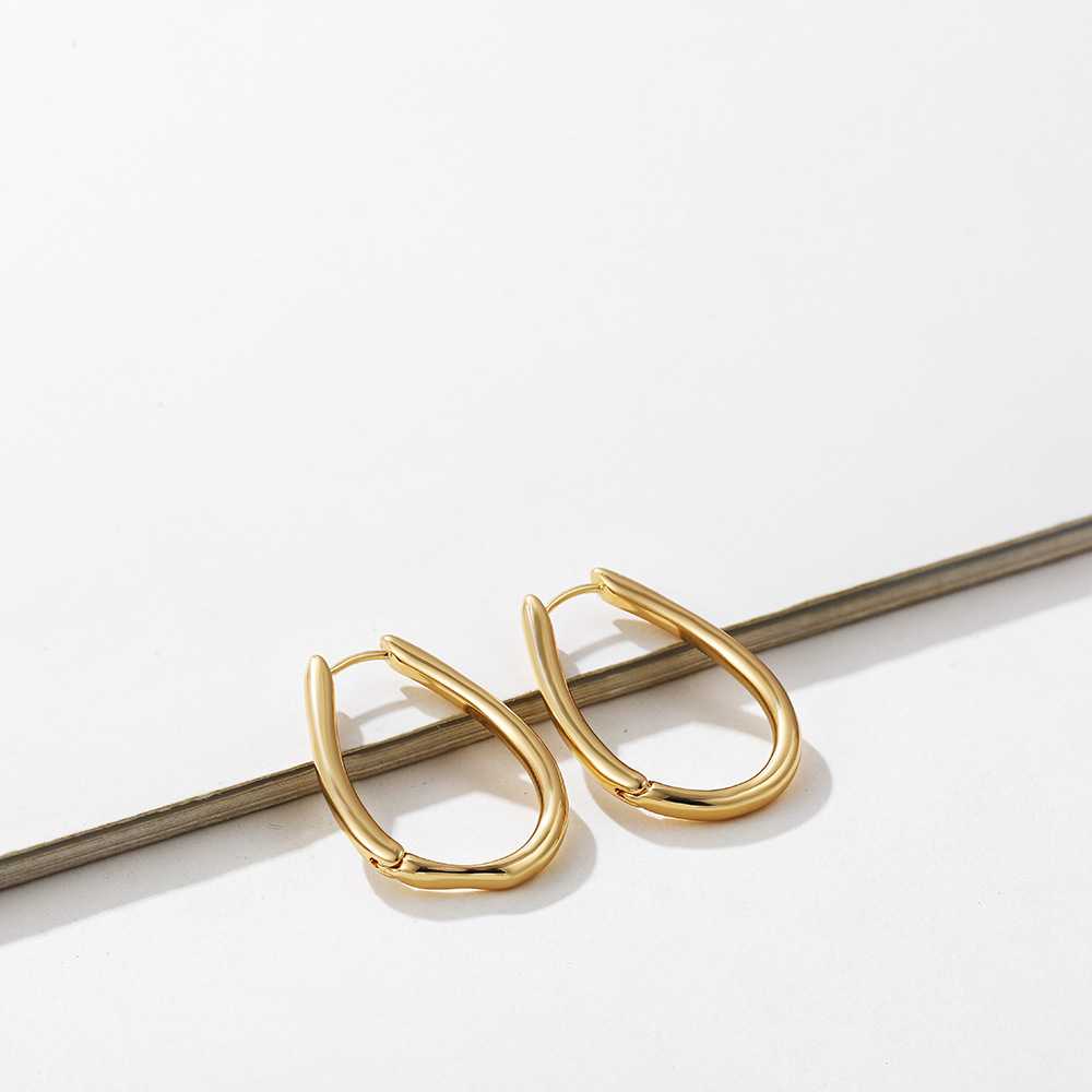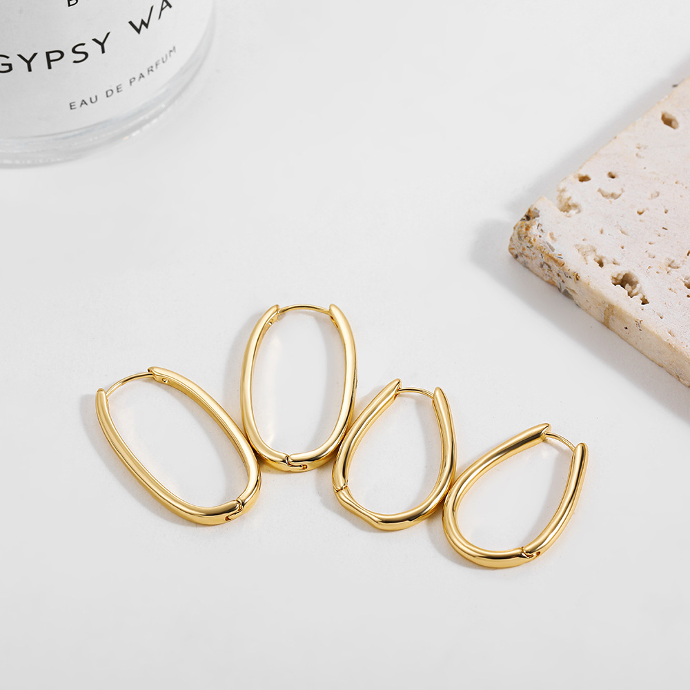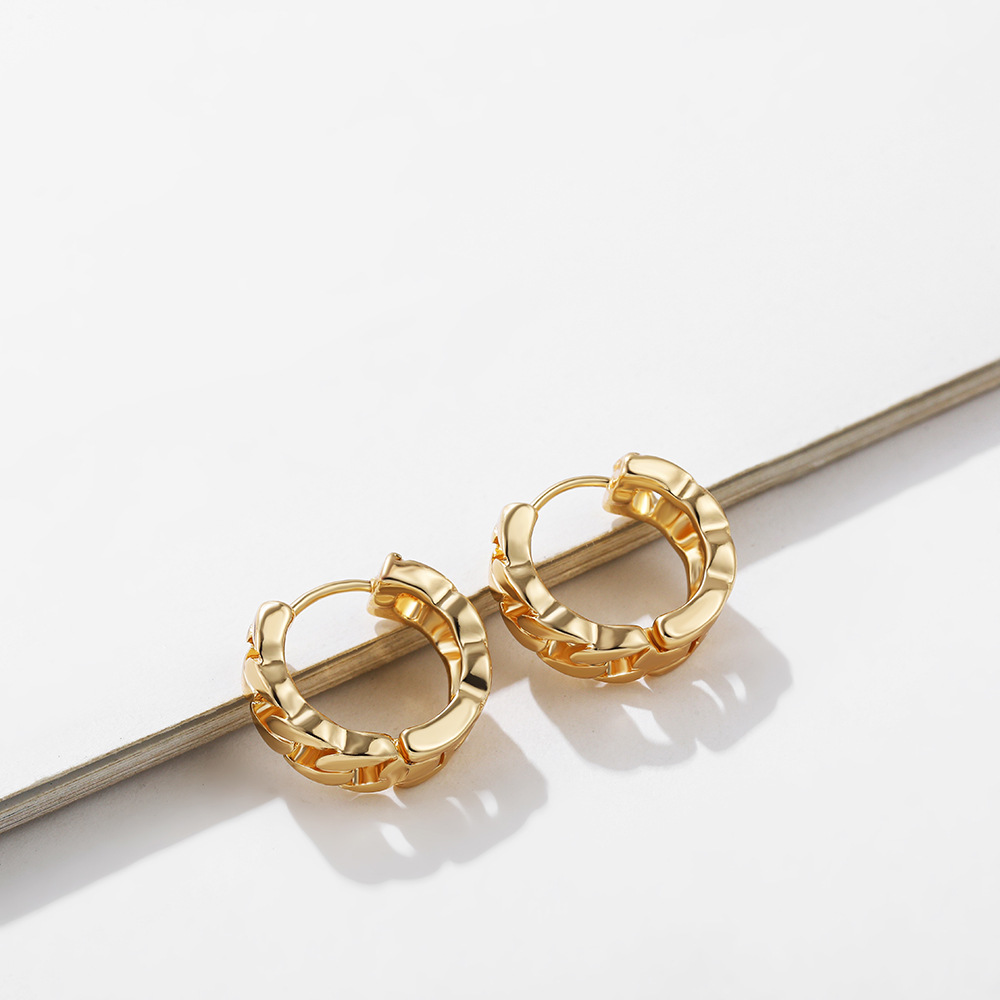 18K Gold Retro Minimalist Earrings Geometric Twist Circle Layered Light-Luxury Hoops